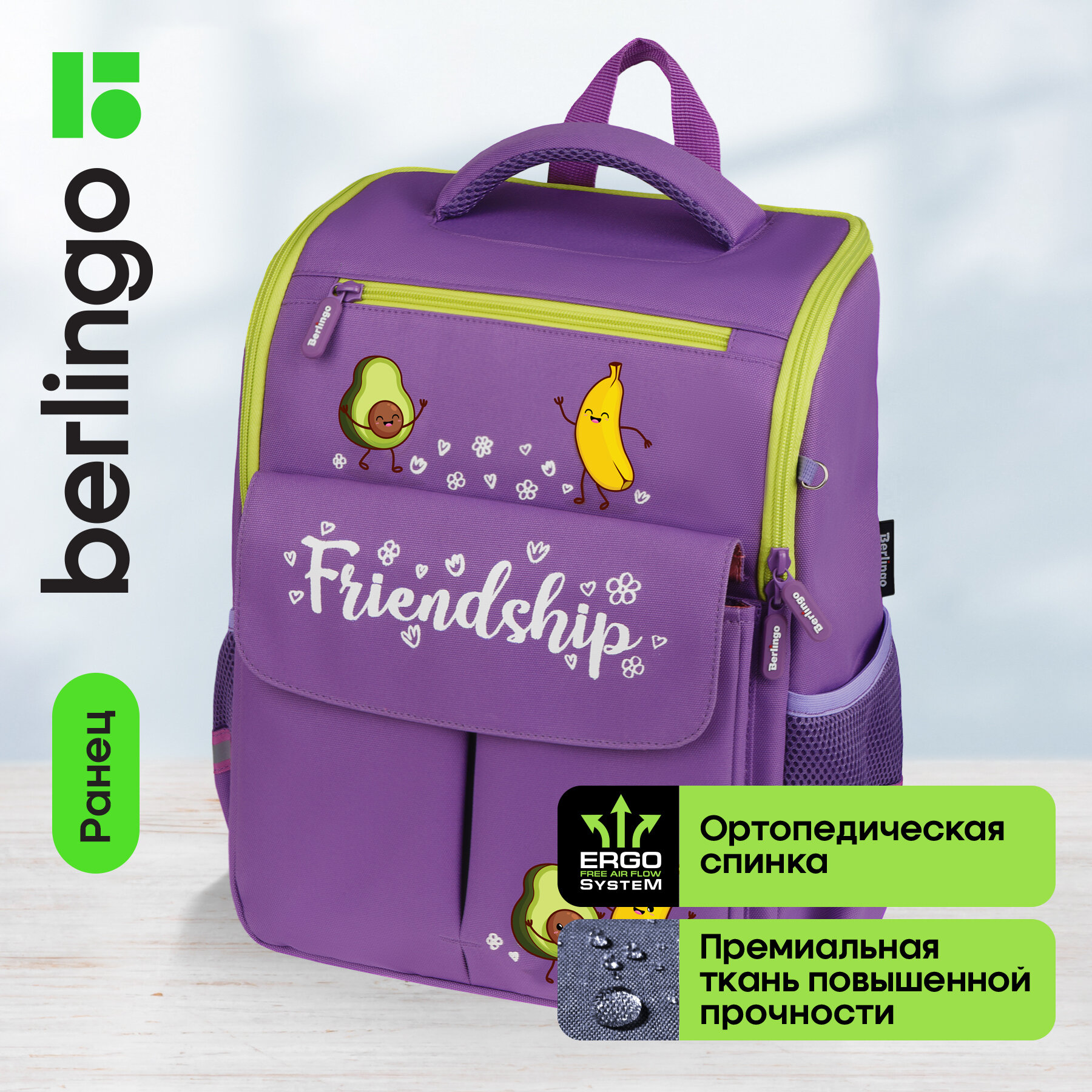 Berlingo Ранец/ рюкзак/ школьный с ортопедической спинкой для девочки "Friendship", RU07225, сиреневый