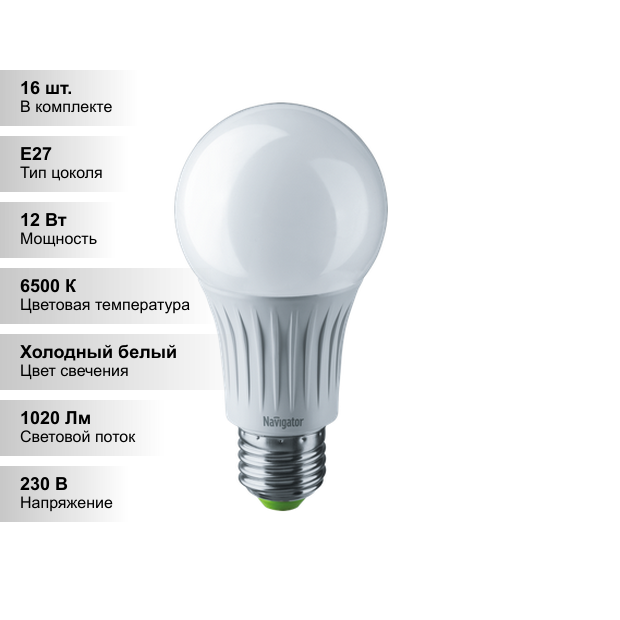 Купить (16 шт.) Светодиодная лампочка Navigator A60 12Вт 230В 6500K E27