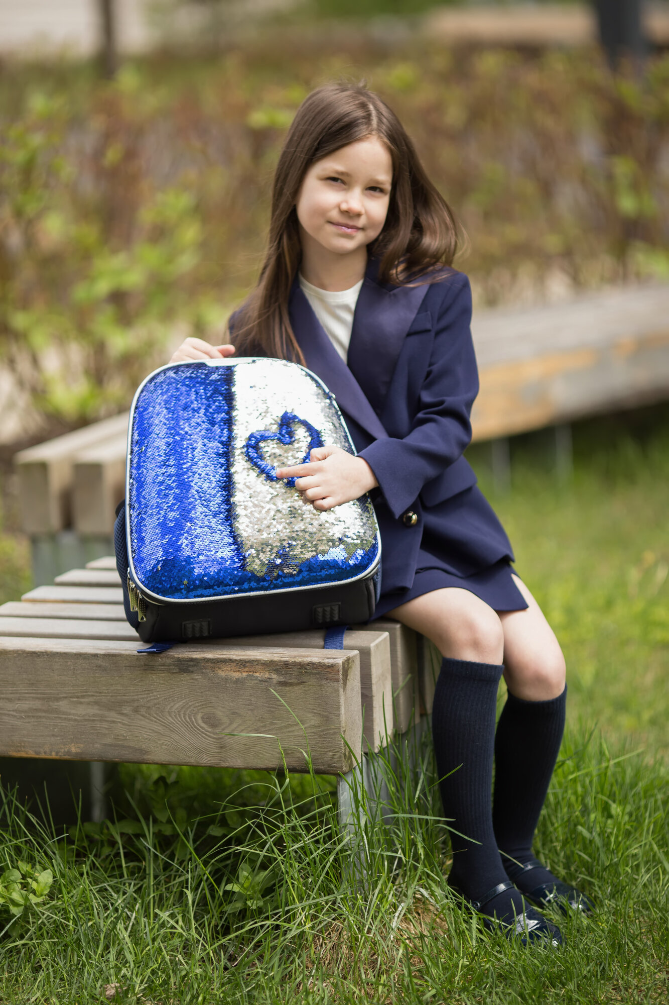 Ранец для первоклассника (рюкзак) №1 School для девочки, Sparkle Blue, ортопедическая спинка, двусторонние пайетки