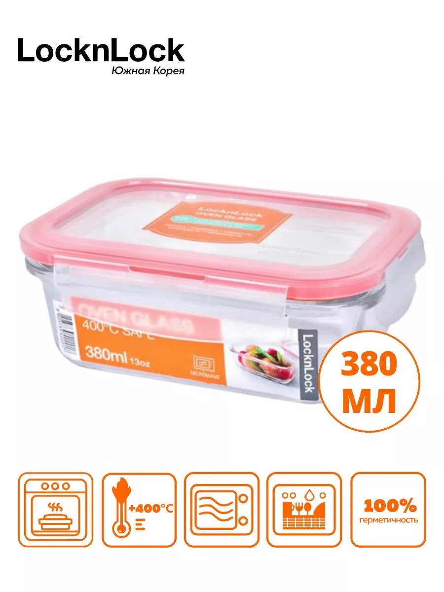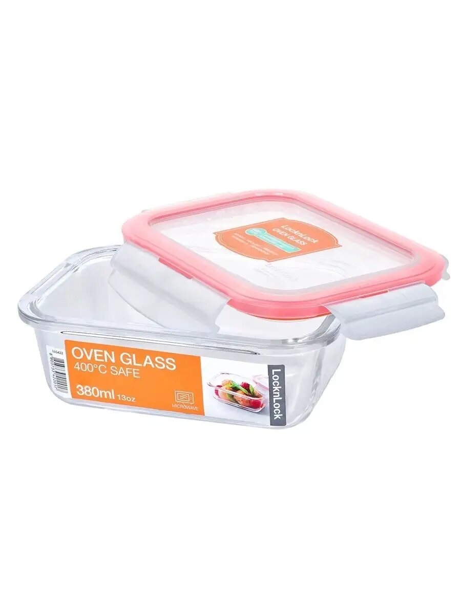 Стеклянный контейнер для пищевых продуктов "Lock&Lock" OvenGlass, герметичный, жаропрочное стекло, прямоугольный 380мл.