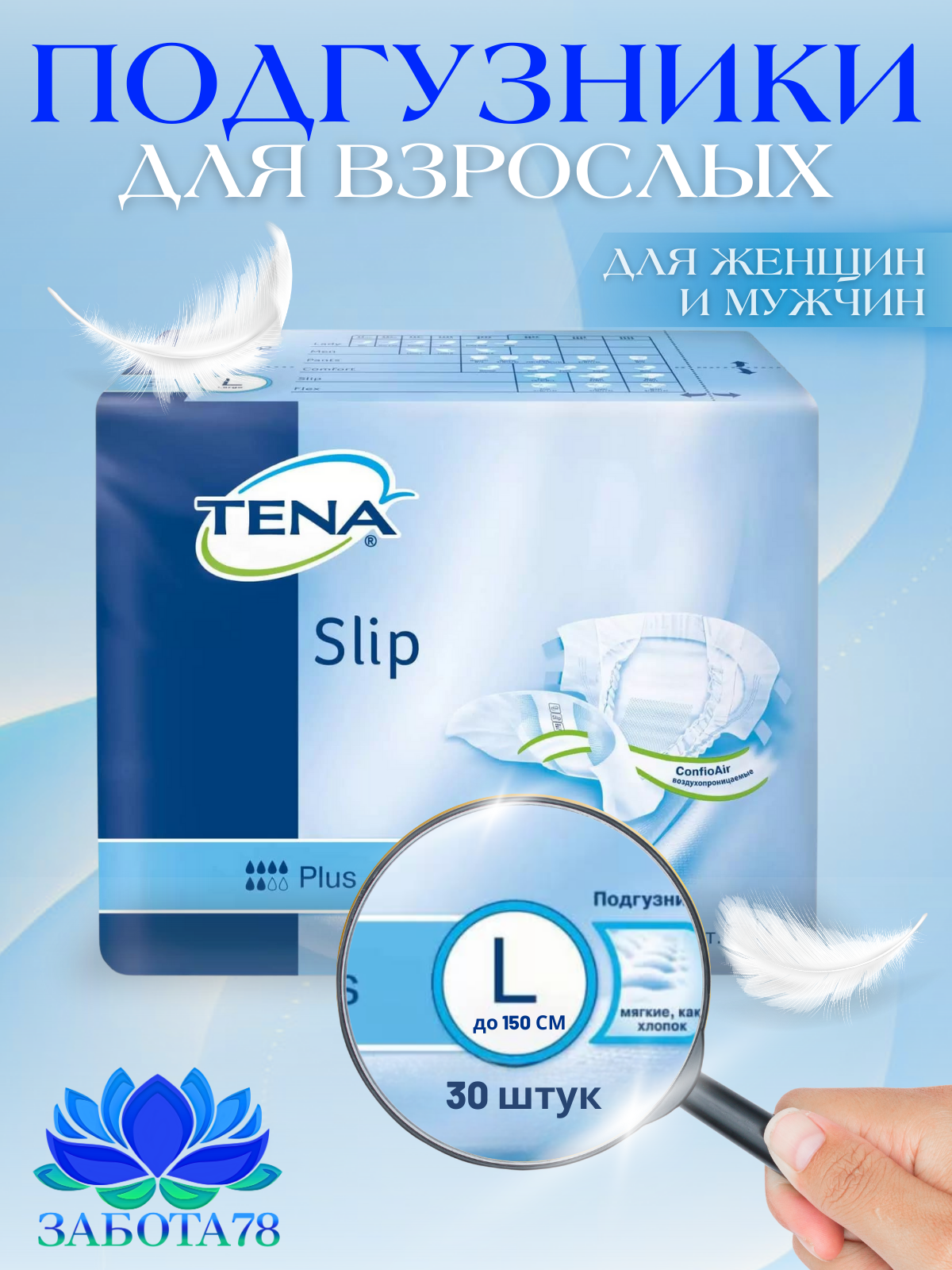 Тена, подгузники для взрослых дышащие Слип Плюс (L), 30 шт.