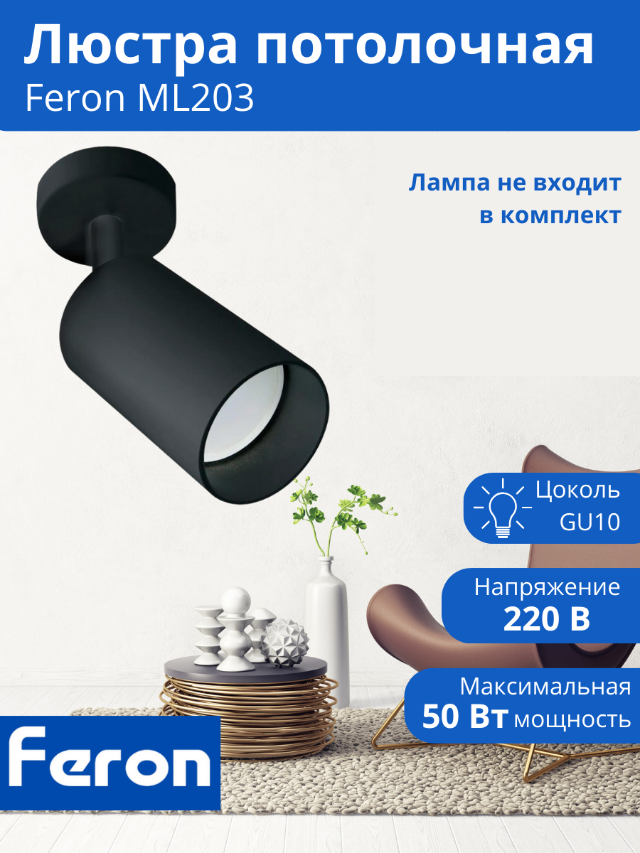 ML201 светильник настенно-потолочный под лампу GU10, черный, Feron, 41062