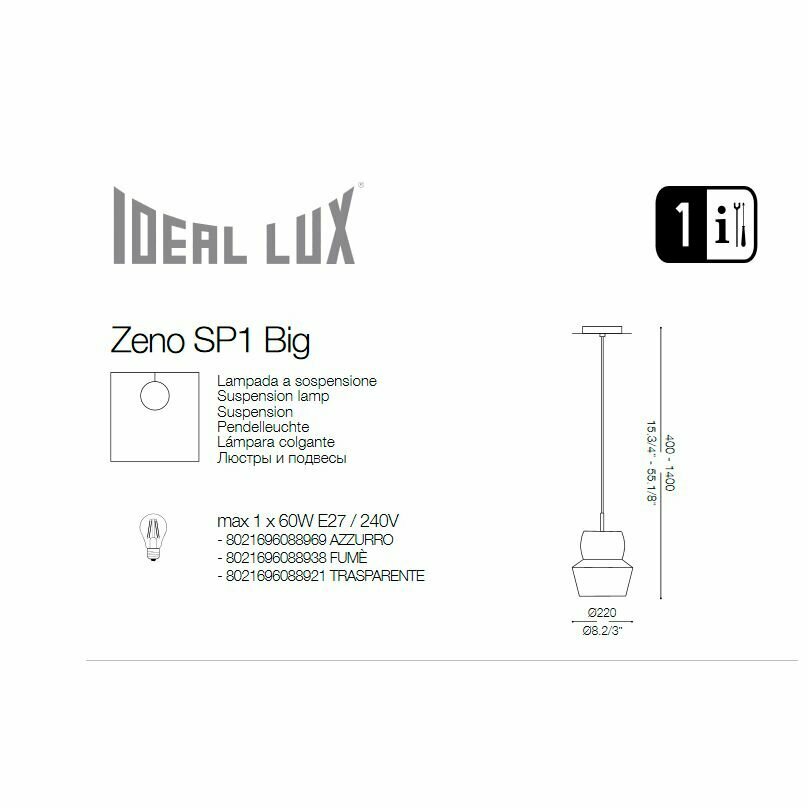 Подвесной светильник Ideal Lux Zeno SP1 Big Azzurro 088969