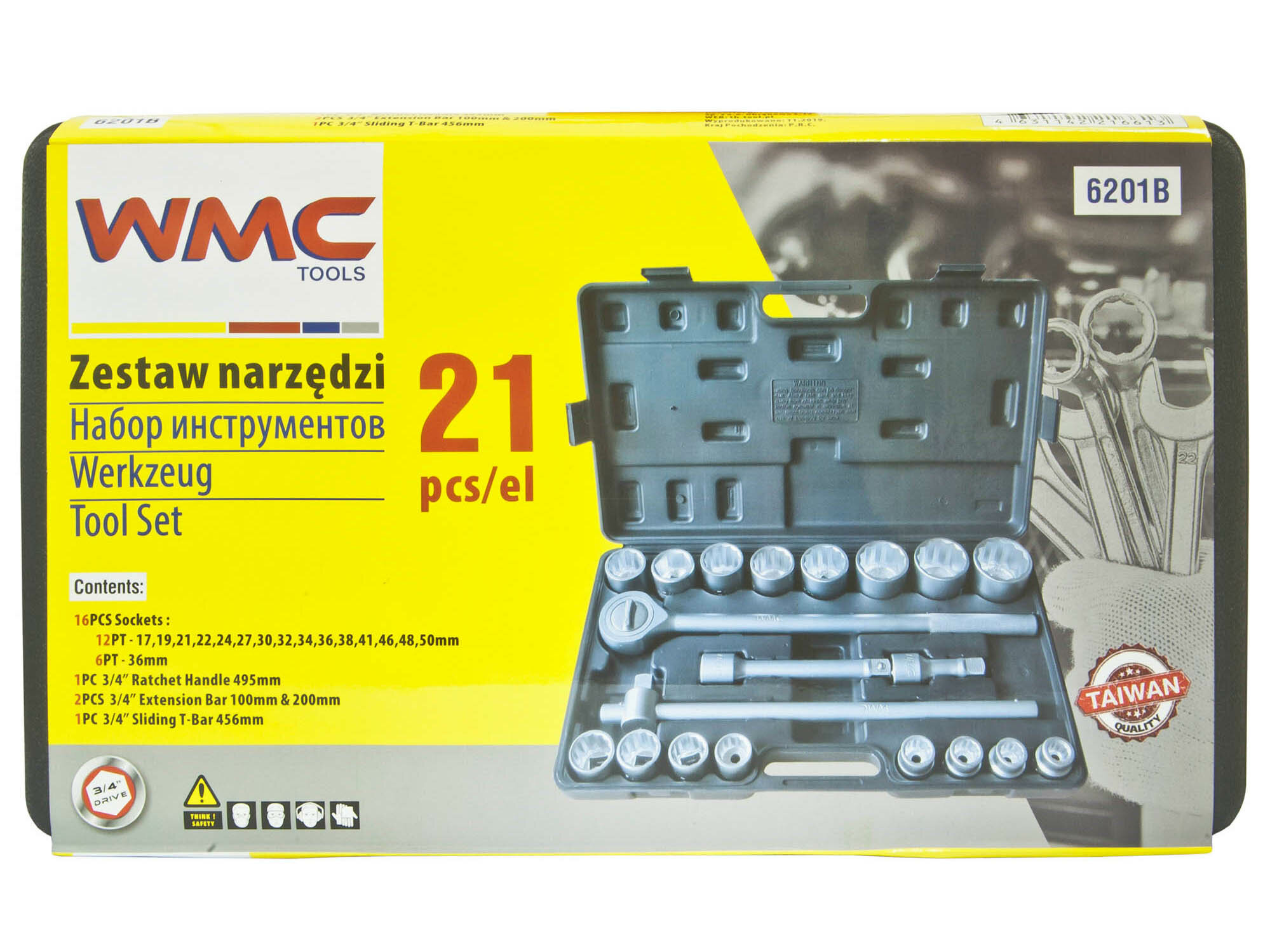Набор инструментов 21 предмет слесарно-монтажный 3/4" 12-ти гран.17-50мм, 36мм-6-ти гран. WMC TOOLS WMC-6201B