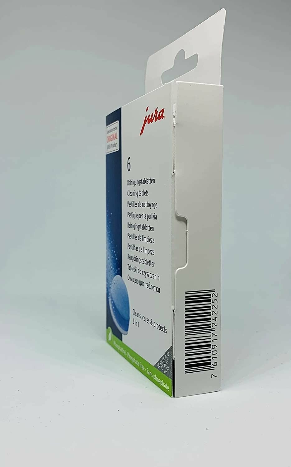 | Дополнительная информация | таблетки от кофейных масел 2 в 1: очистка и защита; характеристики: таблетка цилиндрическая, выпуклая внизу, полусферическая вверху, цвет: белый/синий, нейтральный запах, высота: |