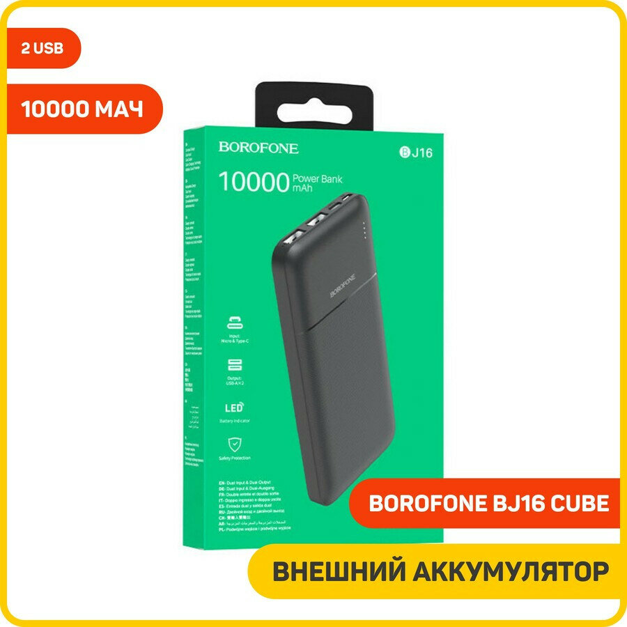 Внешний аккумулятор Borofone BJ16 Cube, чёрный (10000mAh, 2xUSB, 2A)