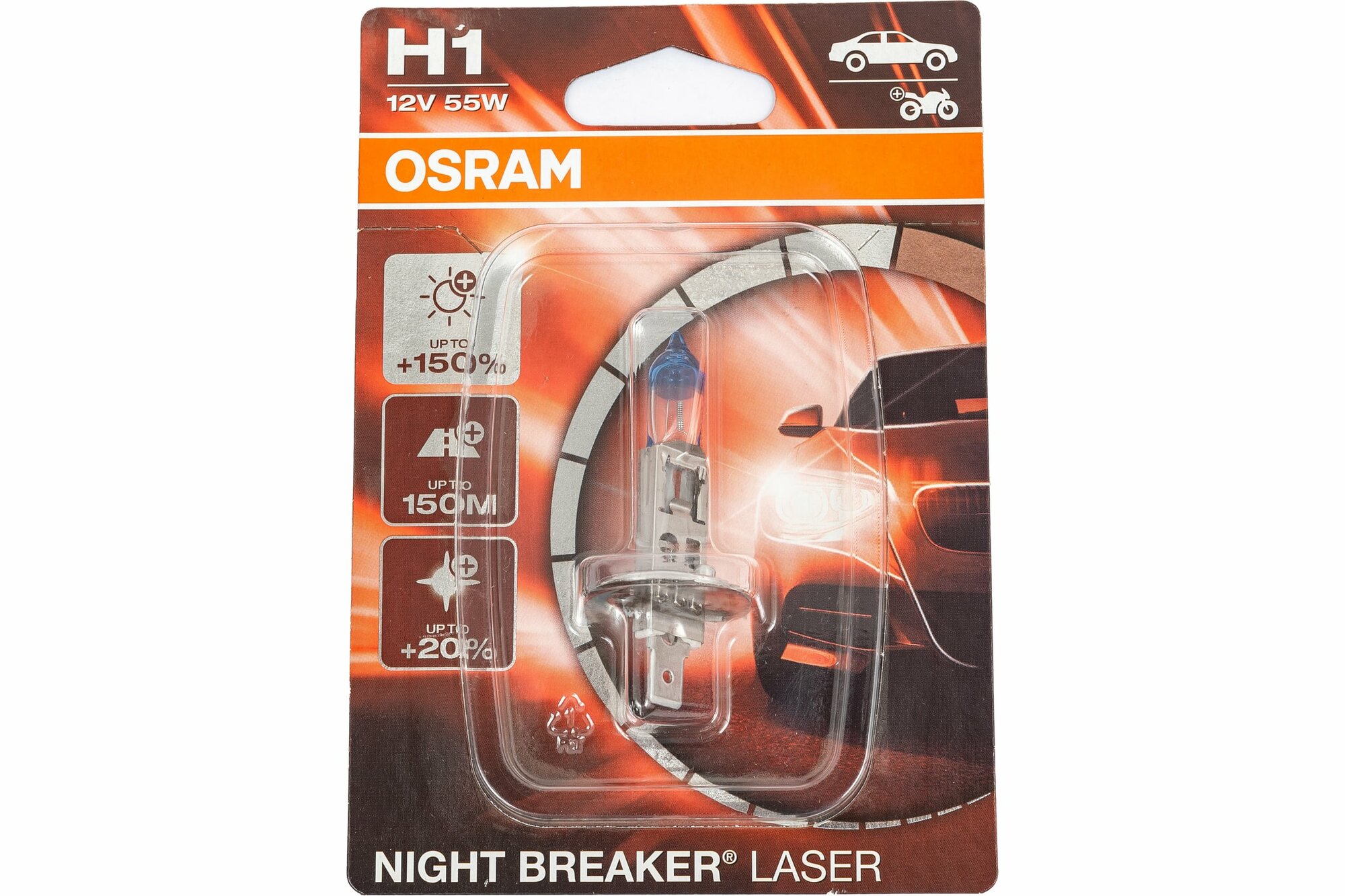 H1 12v- 55w (p14,5s) (+150 света) night breaker laser (блистер 1шт.), OSRAM 64150NL01B (1 шт.)