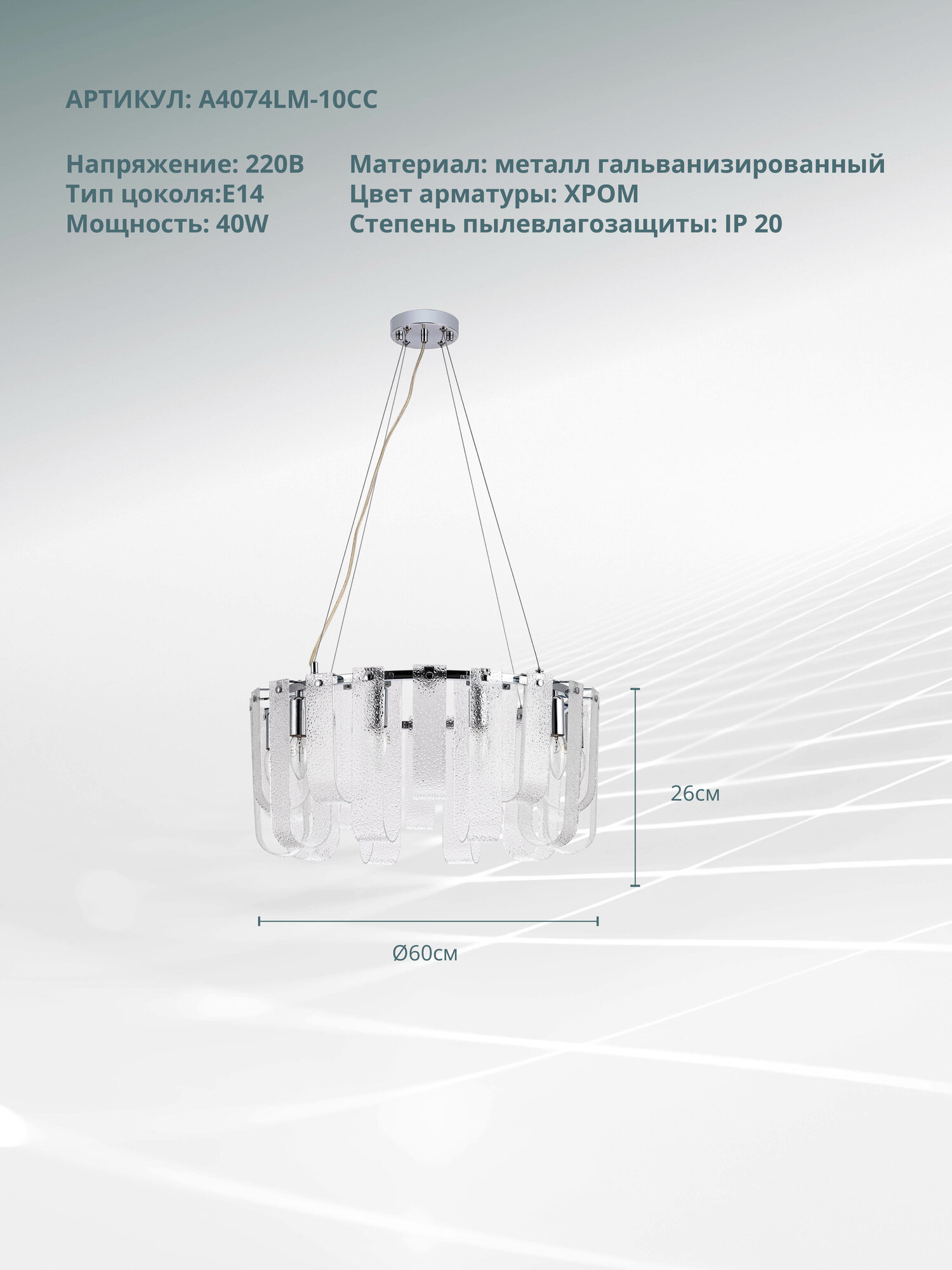 Подвесная люстра Arte Lamp DENEBOLA A4074LM-10CC / E14 / 10х40Вт / IP20 / хром