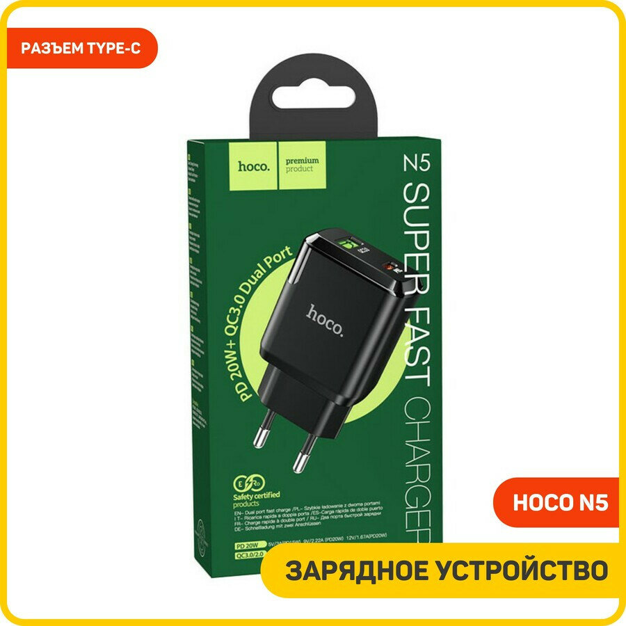 СЗУ Hoco N5 Favor dual port PD20W+QC3.0 charger, черный