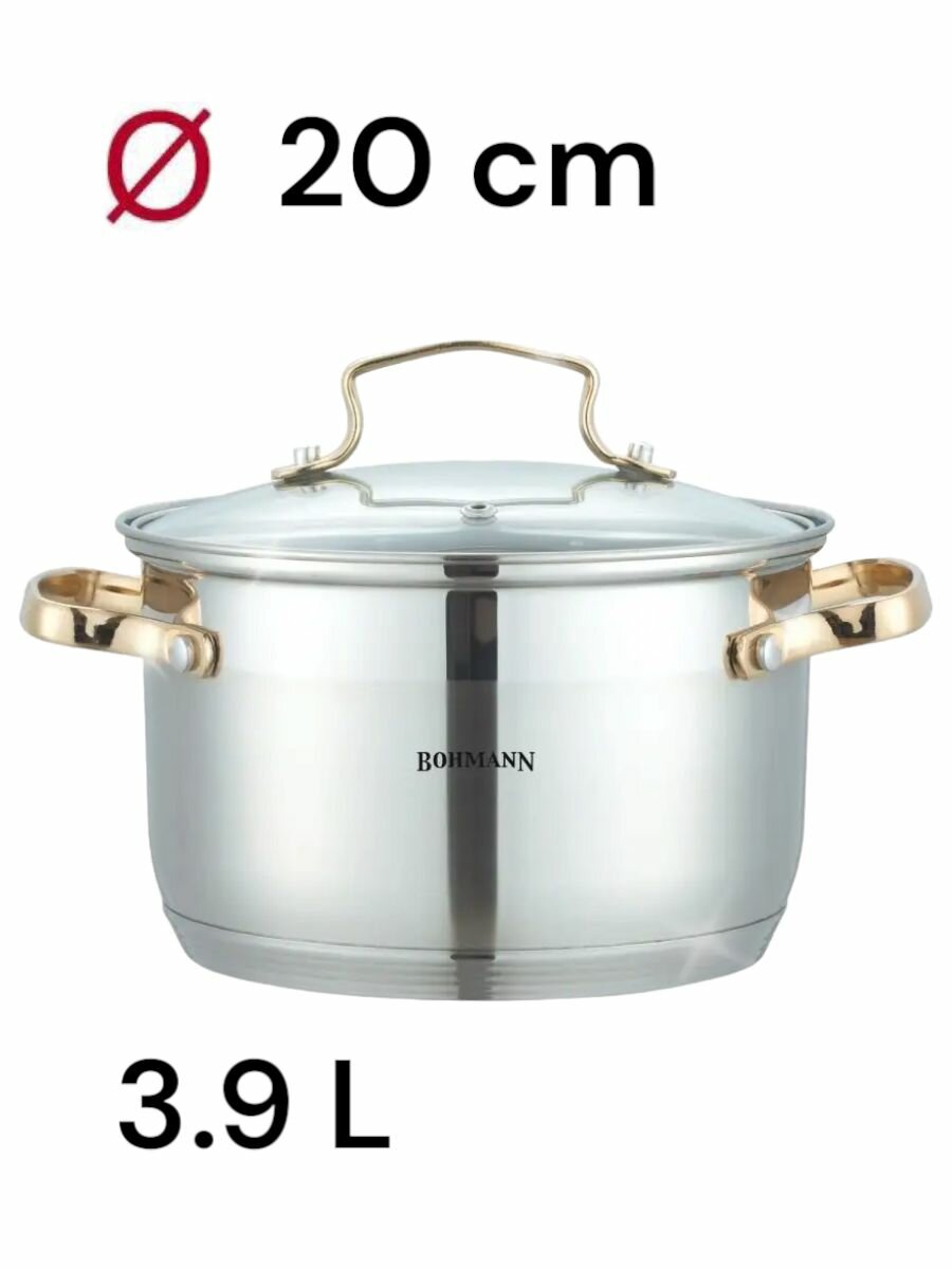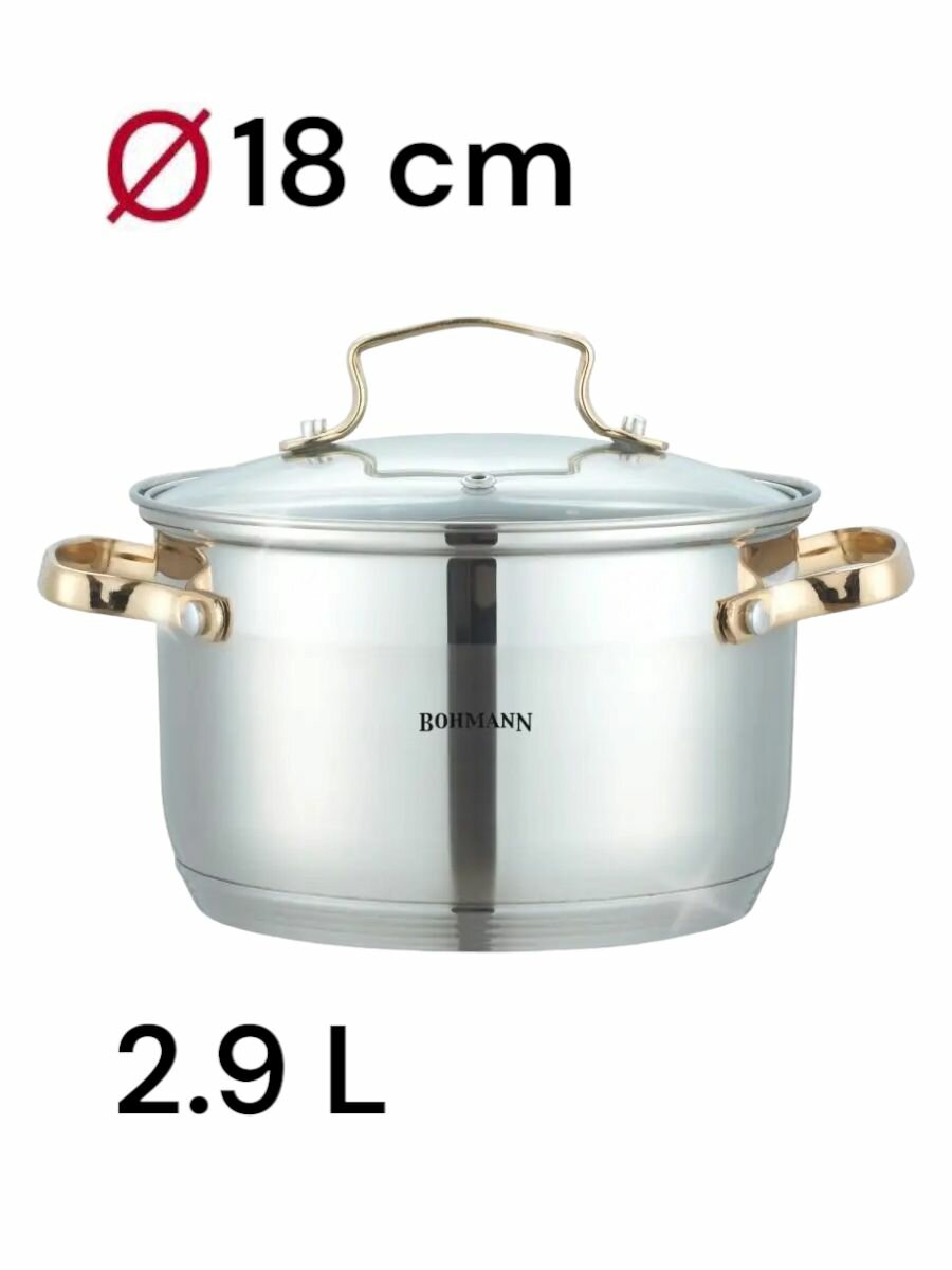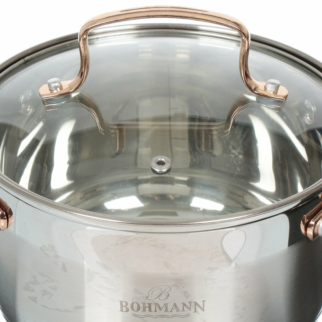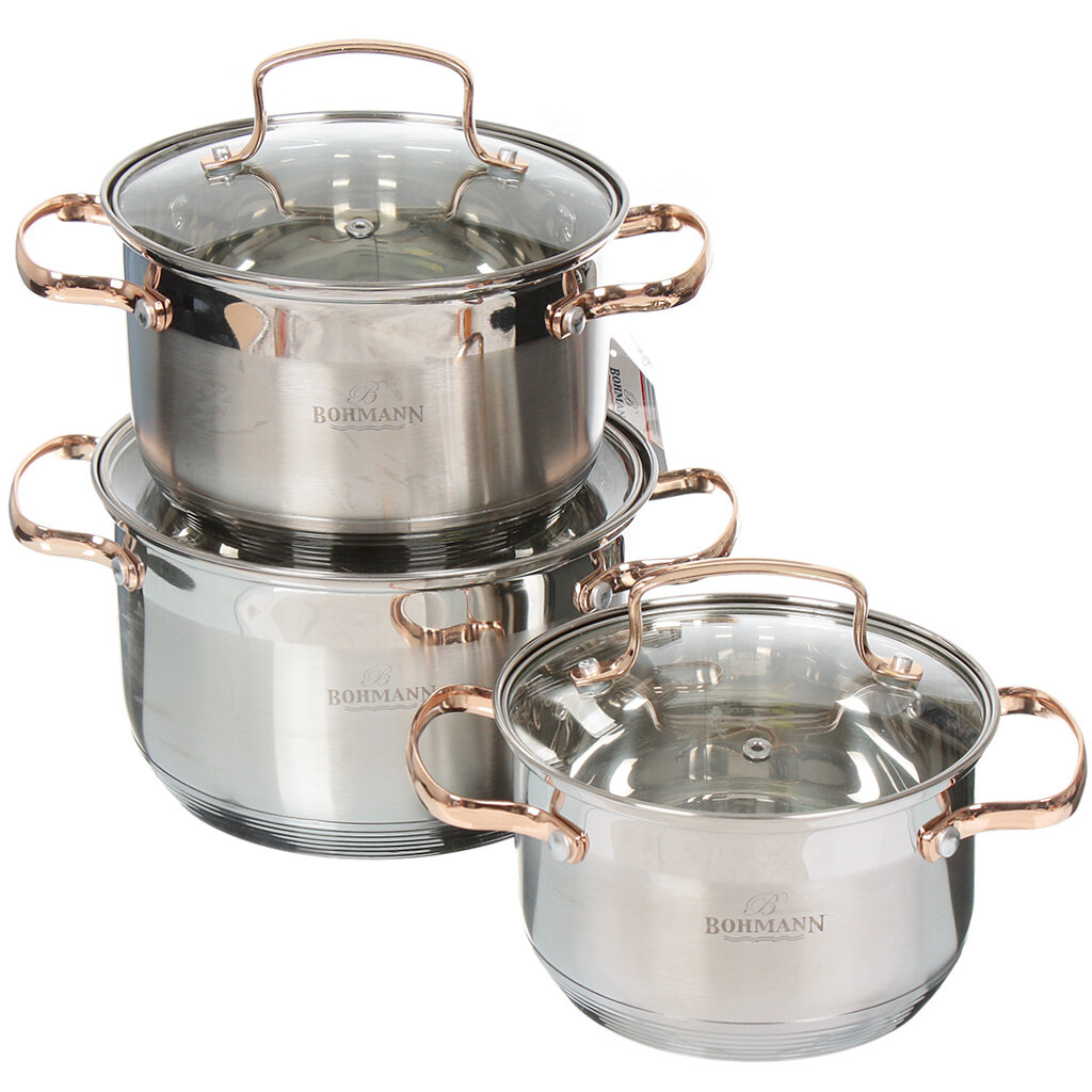 BOHMANN BH 1903, Набор кастрюль 6 предметов (объём: 2.1л; 2,9л; 3,9л; стеклянные крышки)