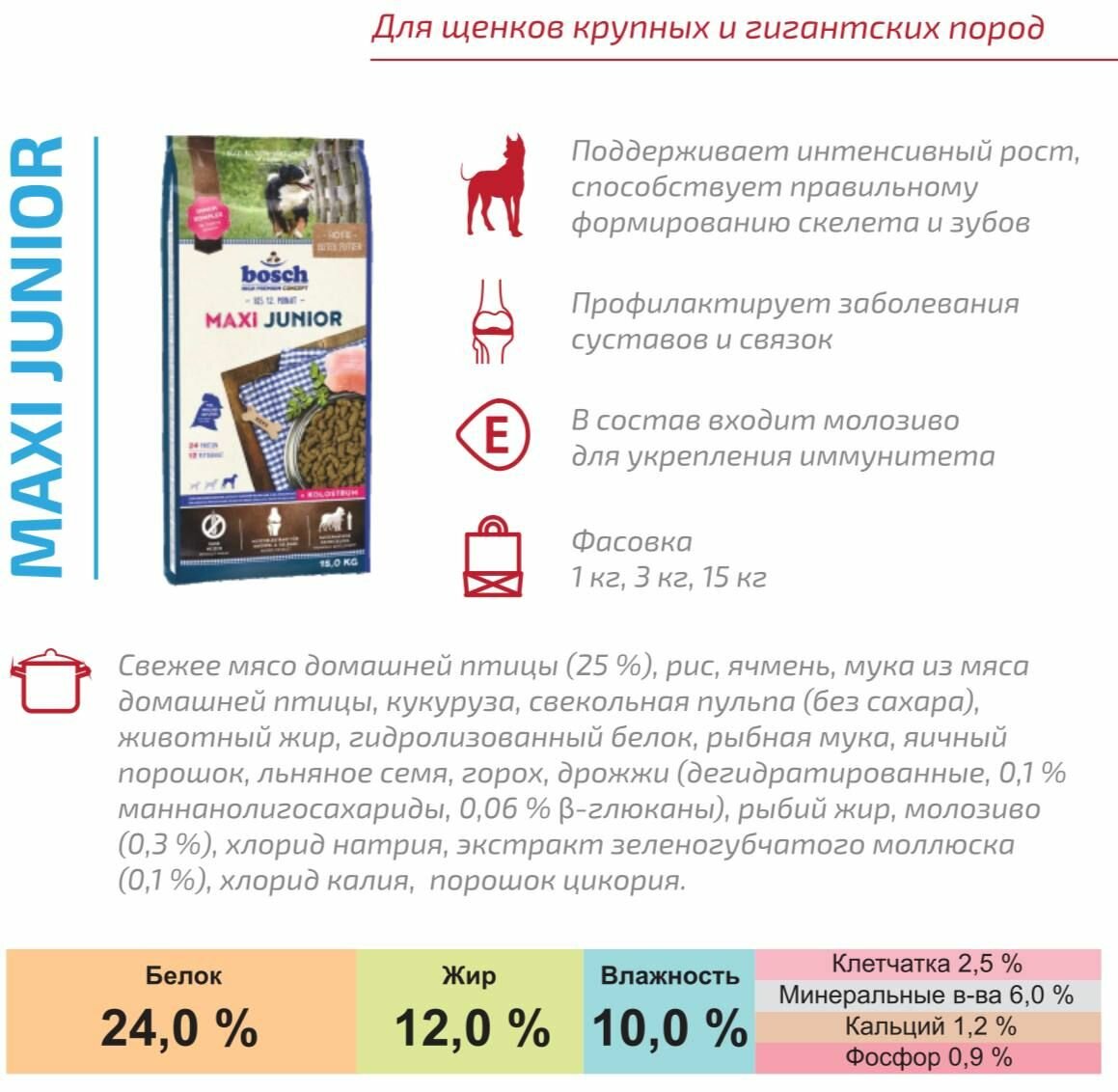 Сухой корм Bosch Maxi Junior для щенков крупных пород 15 кг