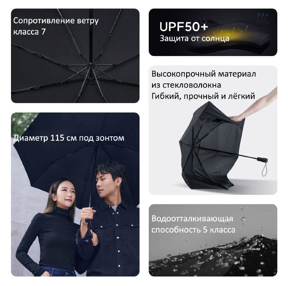 Зонт Xiaomi, автомат, 2 сложения, купол 115 см., 8 спиц, черный