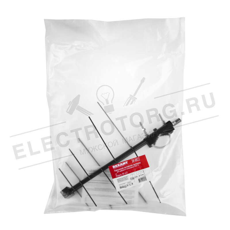 Антенна уличная ТВ активная для аналогового и цифрового ТВ - DVB-T2 (модель RX-422) (пакет) REXANT 34-0422