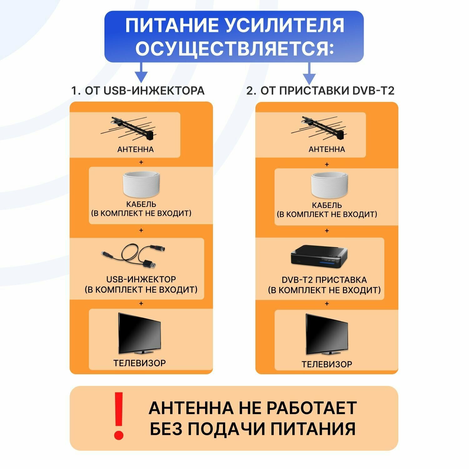Антенна наружная для цифрового ТВ Rexant RX-422 с усилителем (питание от ресивера)