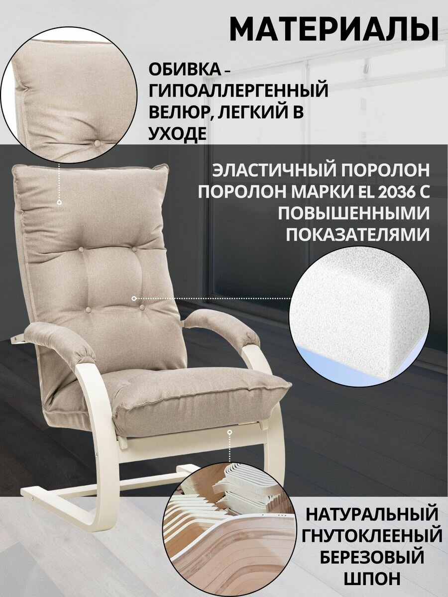 Кресло для отдыха Leset "Лион", ткань велюр бежевый, для дома, для дачи