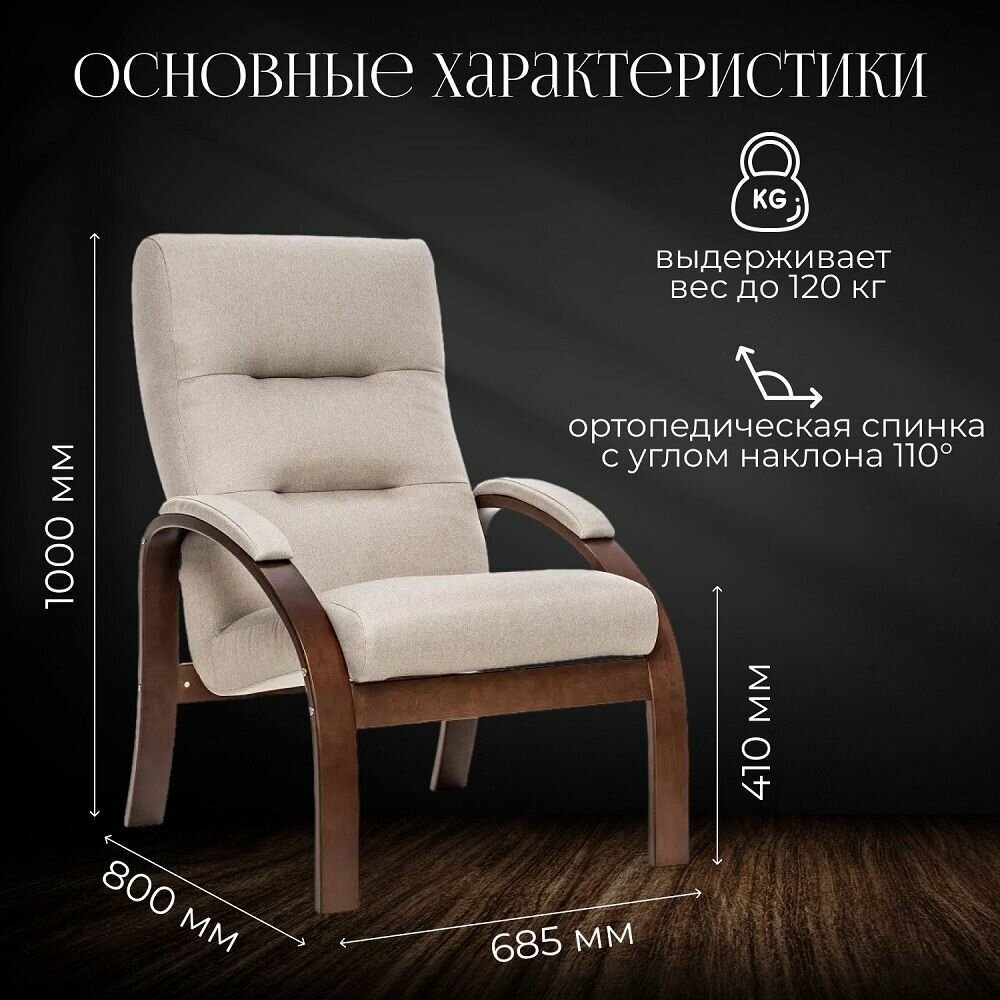 Кресло для отдыха Leset "Лион", ткань велюр бежевый, для дома, для дачи