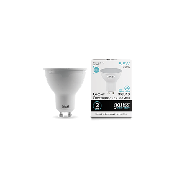 GAUSS 13626 Светодиодная лампа LED Elementary MR16 GU10 5.5W 450lm 4100К 1 10 100