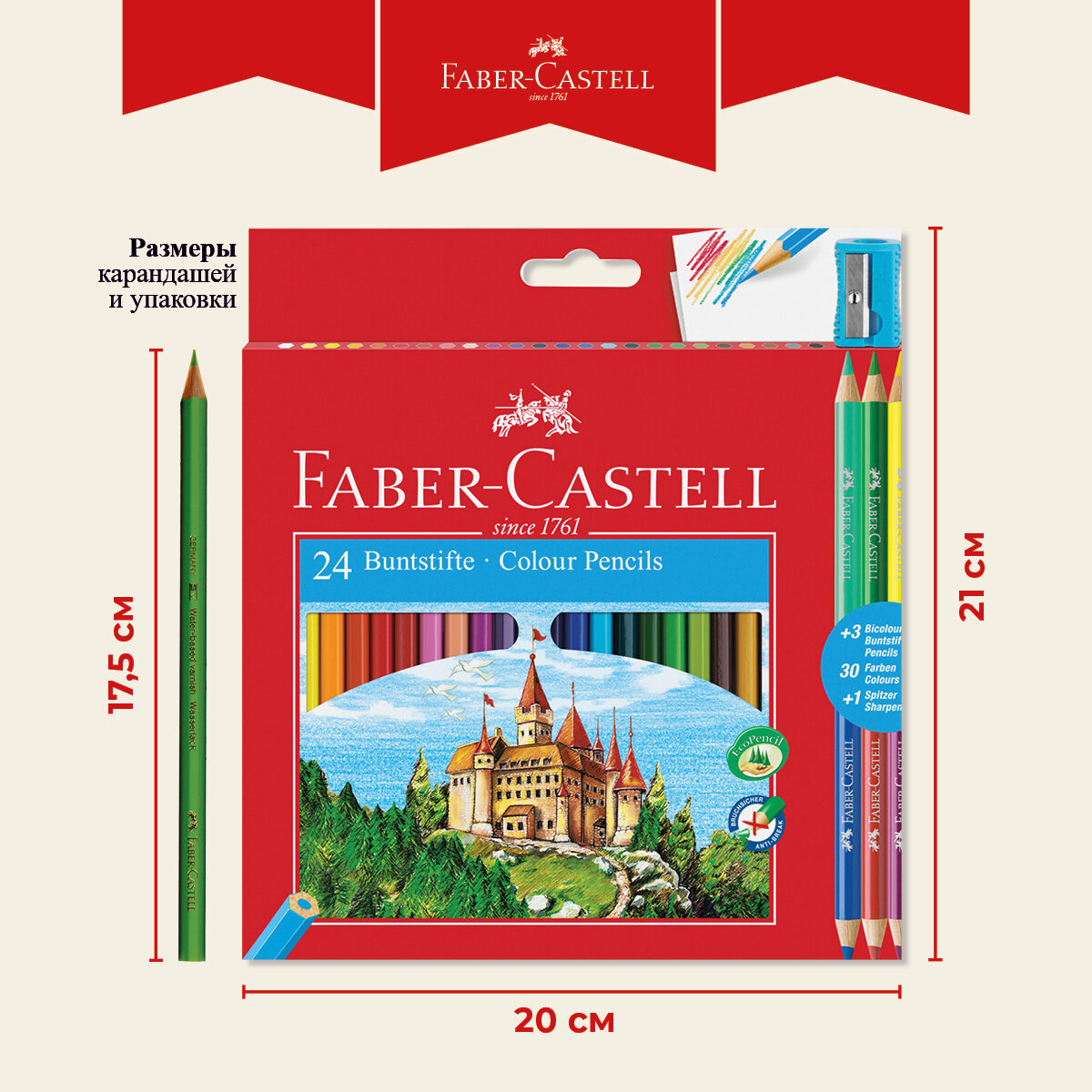 Набор цветных карандашей Faber-Castell (Замок), 24 цвета, 3 двусторонних карандашей, точилка