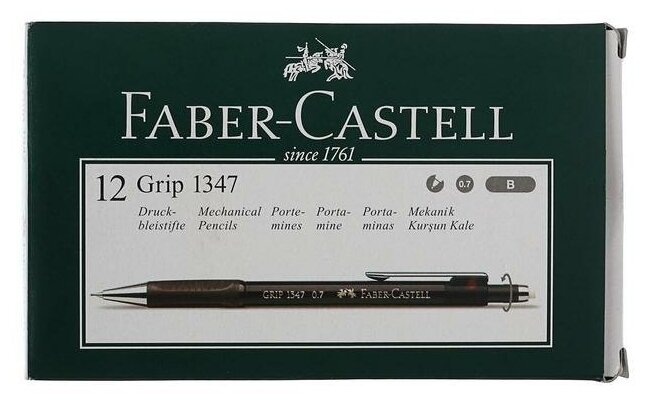 Купить Карандаш механический 0.7 мм B, Faber-Castell, Grip 1347 (черный корпус) + Грифели + Ластик
