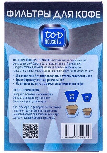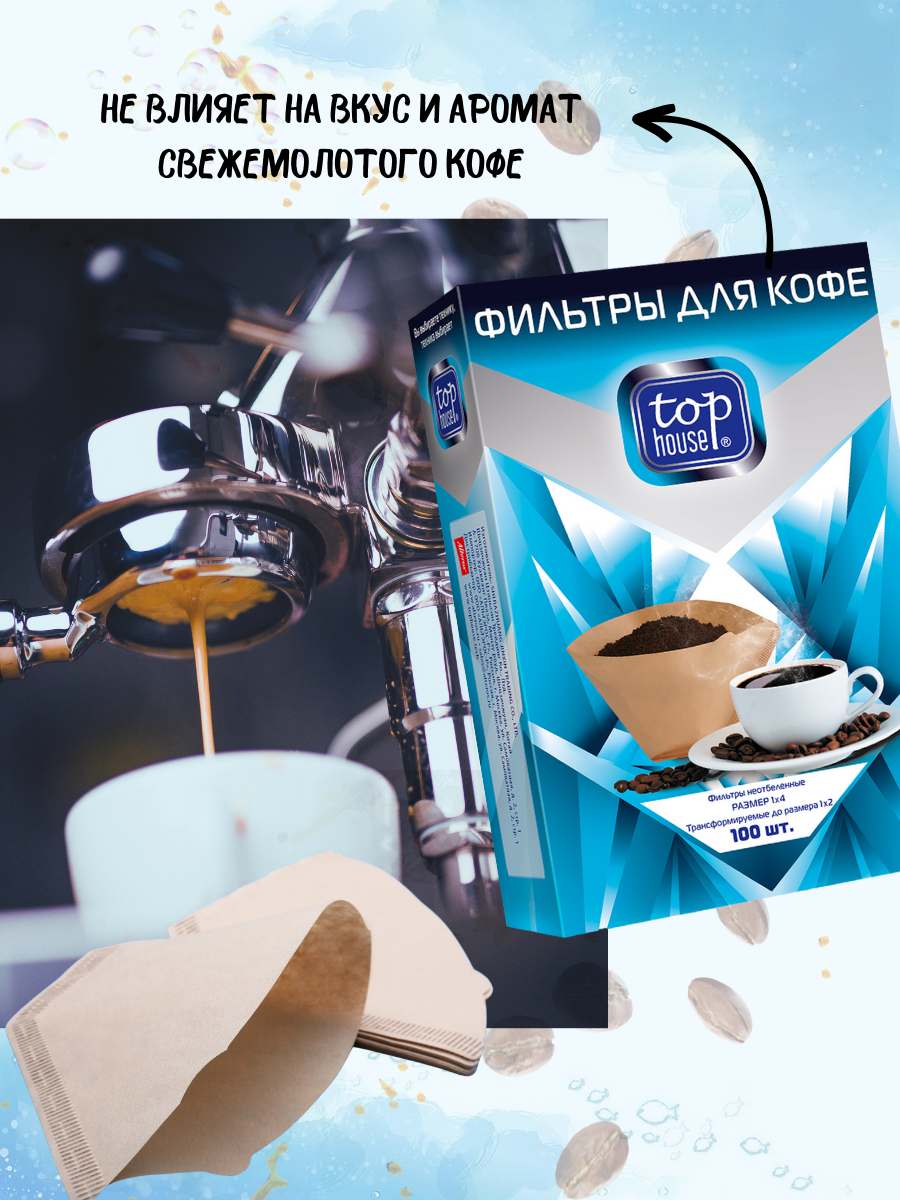 TOP HOUSE фильтры для кофе неотбеленные размер 1х4 100 шт в коробке