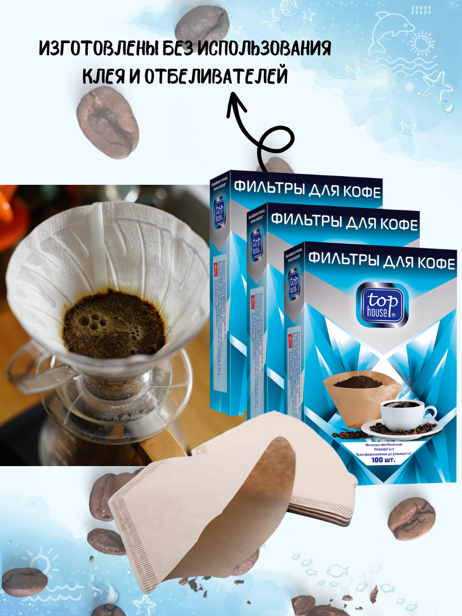 Купить TOP HOUSE Фильтры для кофе неотбеленные, размер "1 х 4" (спайка 3 уп.*100шт.)