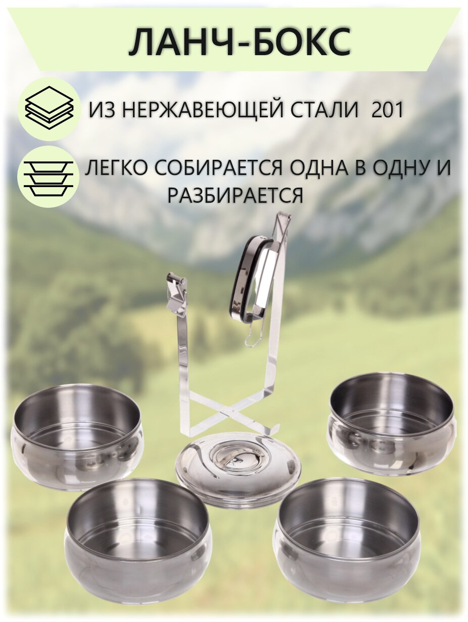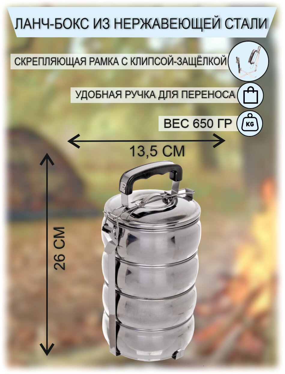 Контейнер для еды, ланч бокс металлический 13,5*22см 4 уровня, круглый интересное: