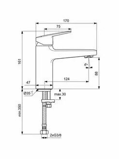 СохранитьСмеситель для умывальника Ideal Standard Ceraplan / неповоротный излив, без донного клапана, термостат (BD222AA) интересное: