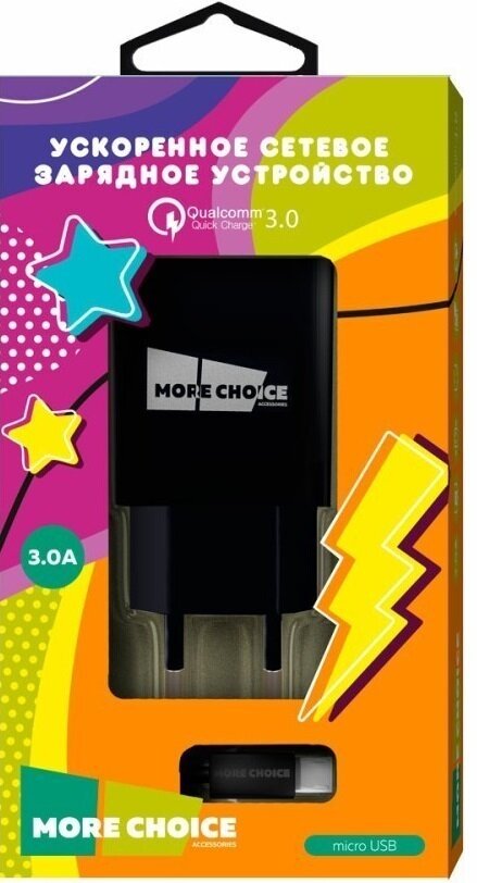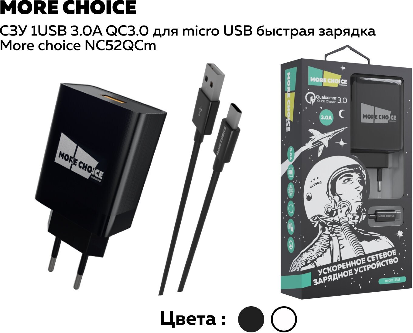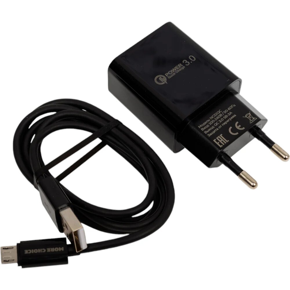 Сетевое зарядное устройство 1USB 3.0A QC3.0 с кабелем micro USB быстрая зарядка More choice NC52QCm Black