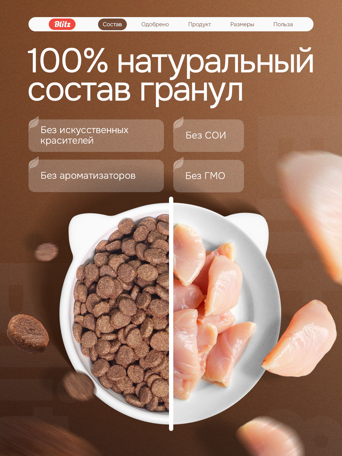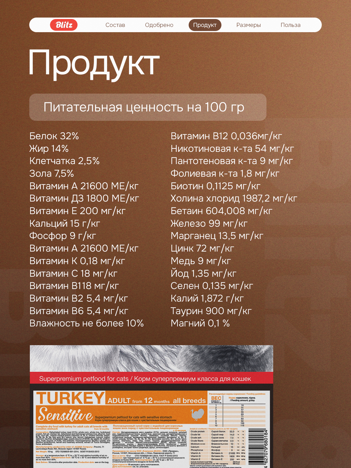 Корм для кошек сухой Blitz / Блиц Sensitive для взрослых животных, гранулы с индейкой 400г / кошачья еда для ежедневного кормления