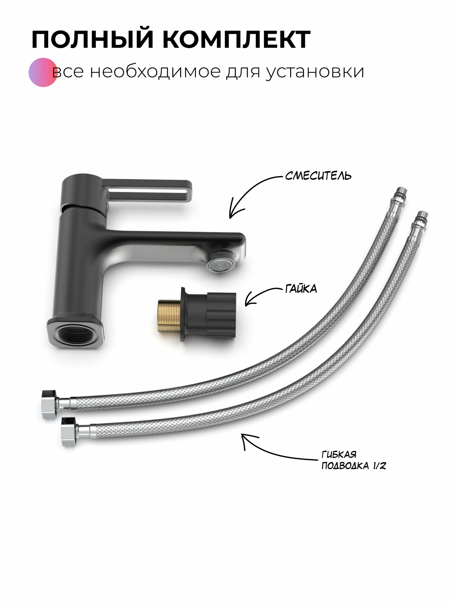 | Комплектация | смеситель - 1 шт., комплект для крепежа - 1 шт., гибкая подводка - 2 шт. |