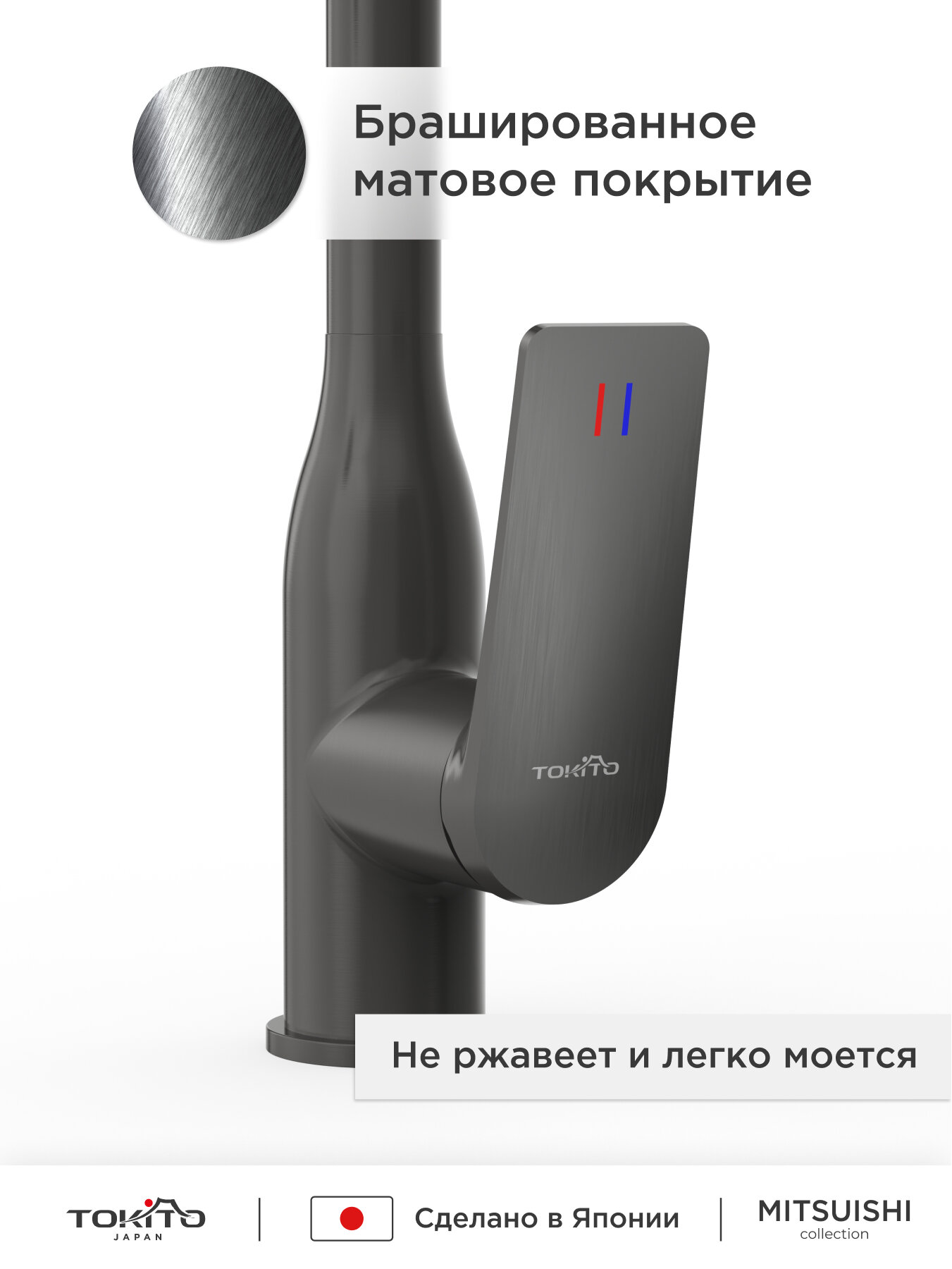 Купить Смеситель для кухни Tokito Mitsuishi оружейная сталь с гибким изливом с подключением к фильтру (TOK-MIT-1012GM)