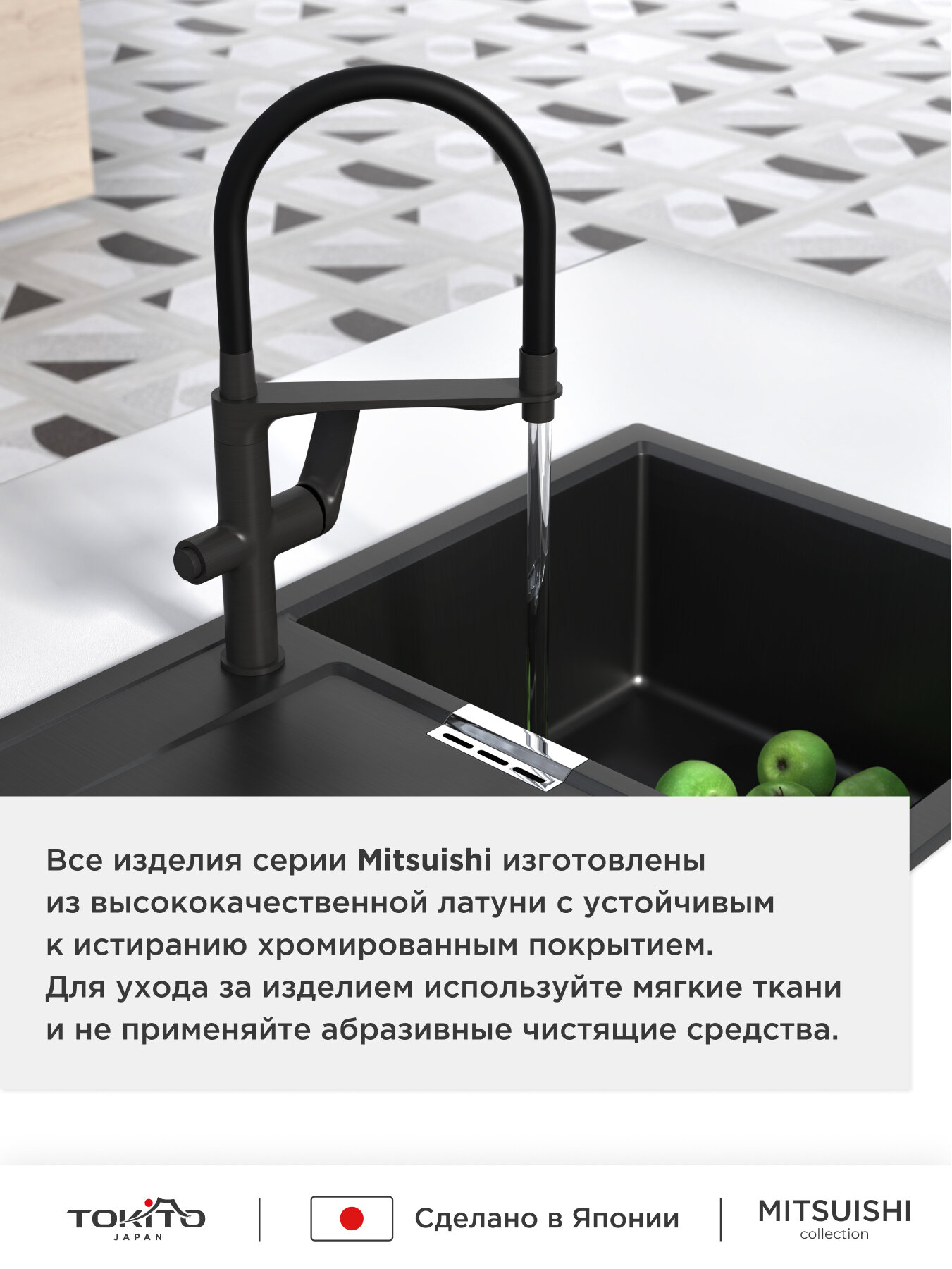 Кухонный смеситель для раковины с гибким изливом и фильтром для питьевой воды TOKITO TOK-MIT-1012 серия MITSUISHI, латунный, хром/черный