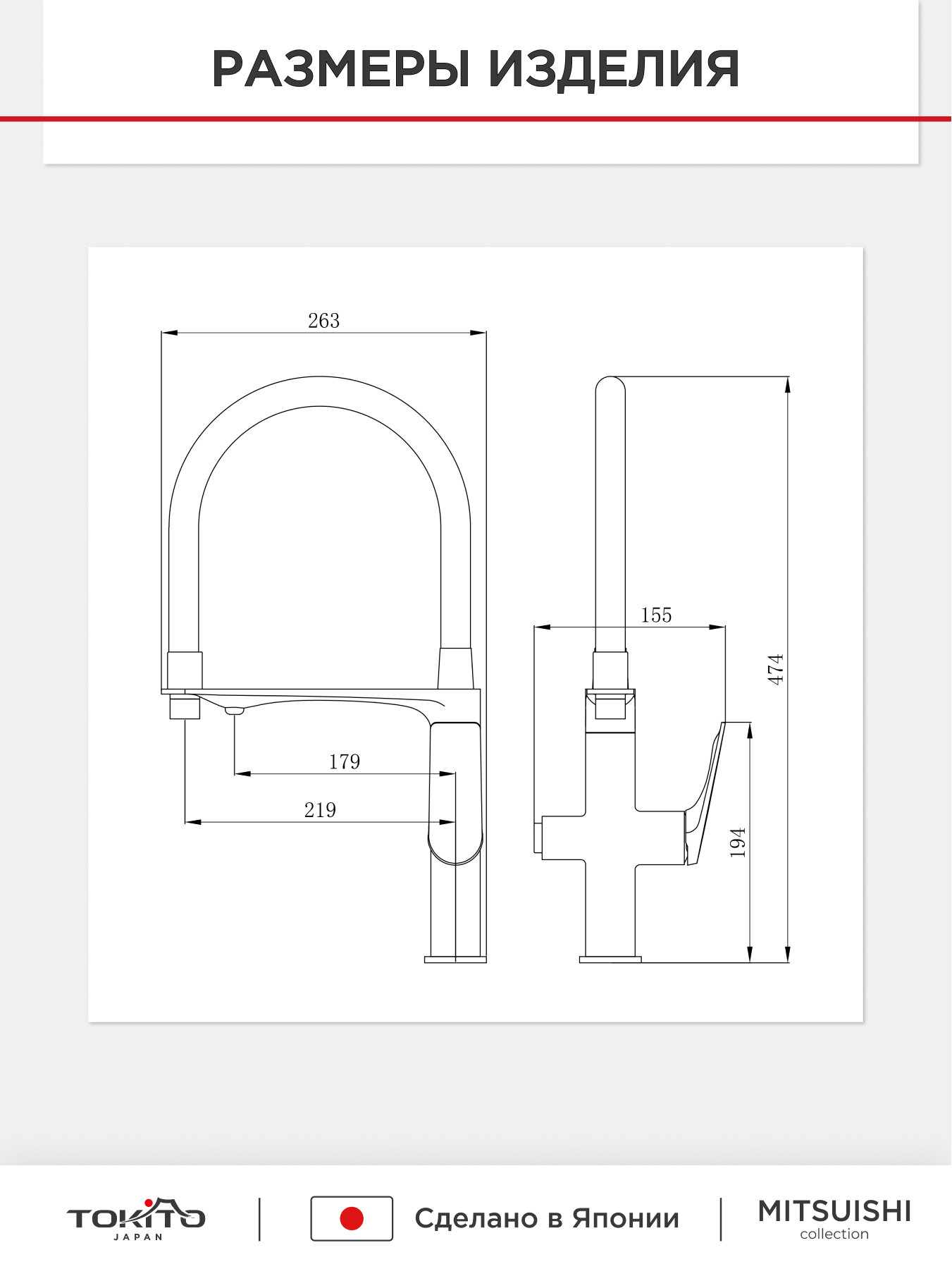 СохранитьСмеситель для кухни Tokito Mitsuishi оружейная сталь с гибким изливом с подключением к фильтру (TOK-MIT-1012GM) интересное: