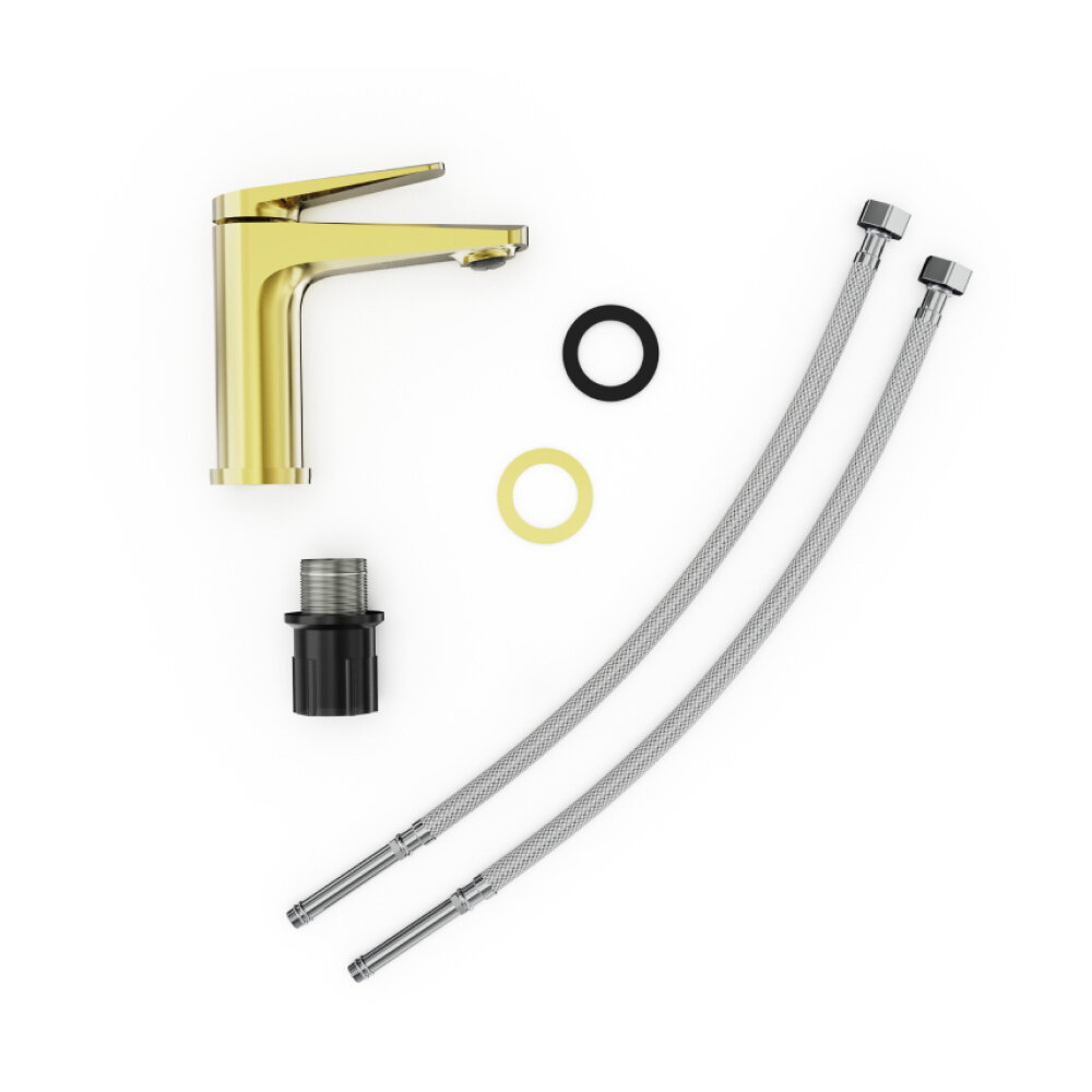 Смеситель для раковины TOKITO TOK-KIN-1011 с монолитным изливом, матовое золото