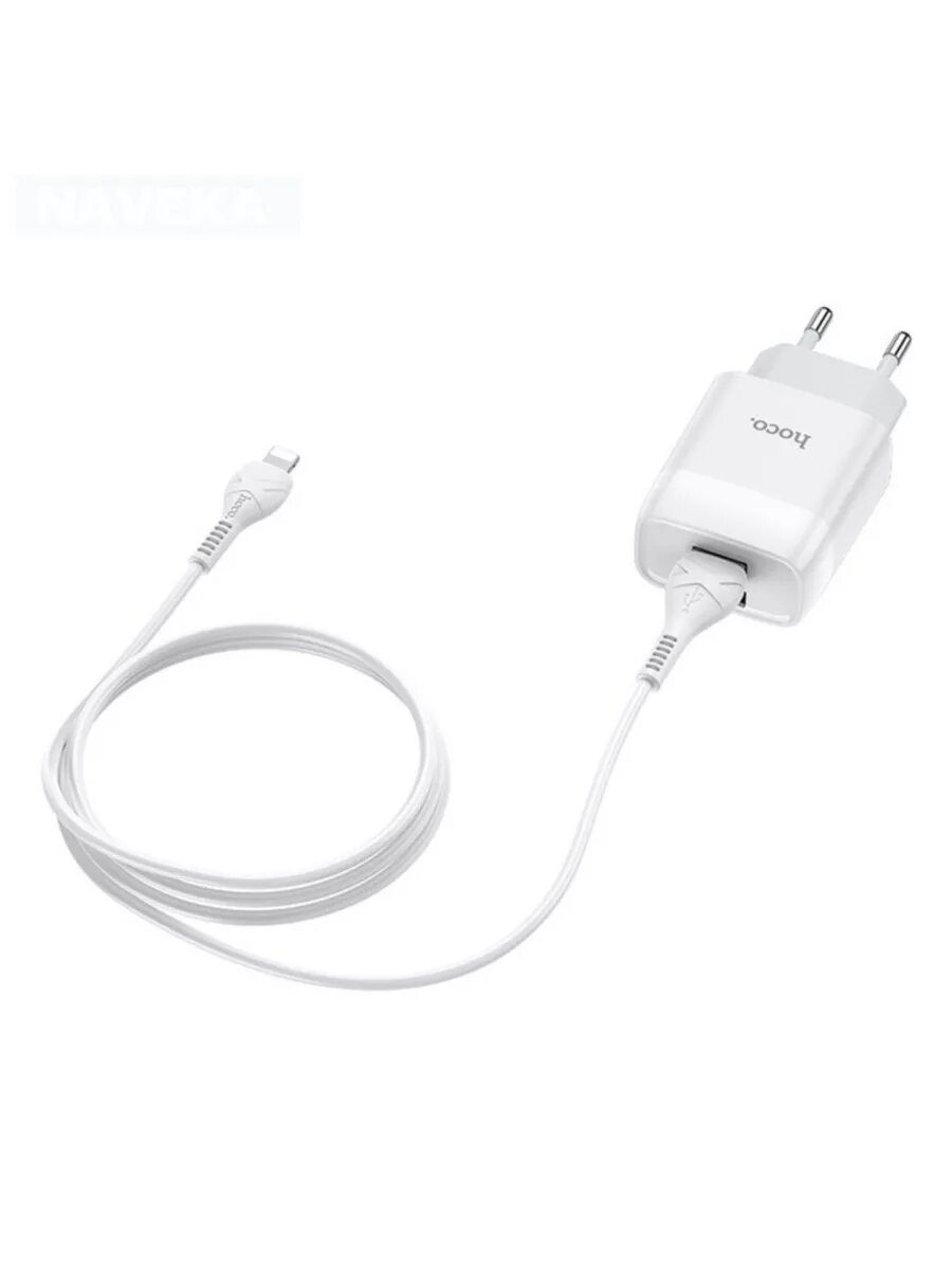 Сетевое зарядное устройство USB Hoco C73A (2.4A/2 порта/кабель Lightning) белый