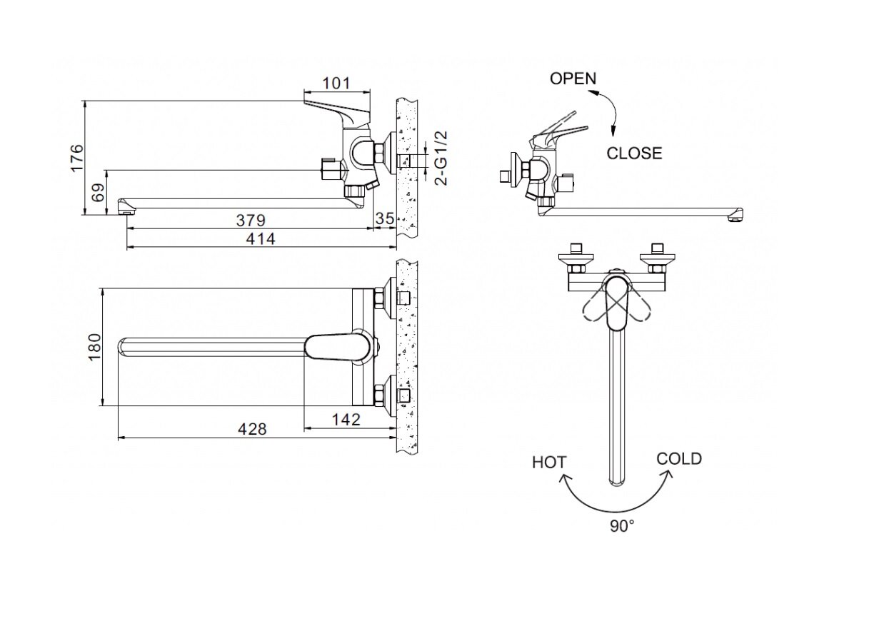 | Угол поворота рукоятки гориз. | 90 градусов |