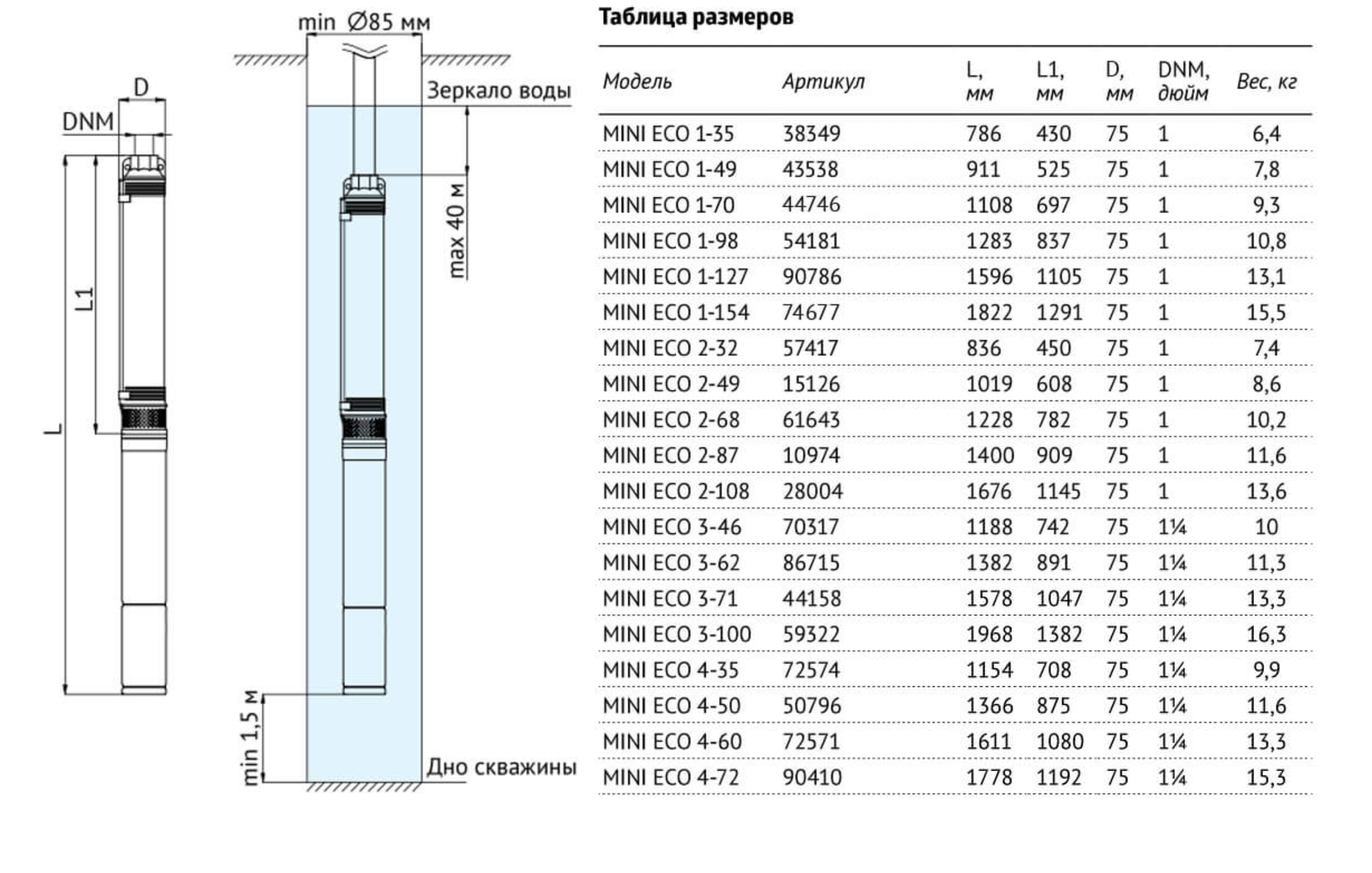 Насос погружной скважинный UNIPUMP MINI ECO 1-70 интересное: