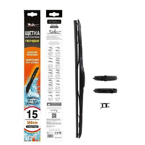 Щетка стеклоочистителя гибрид 380мм (15") 3 адаптера (AWB-H-380)