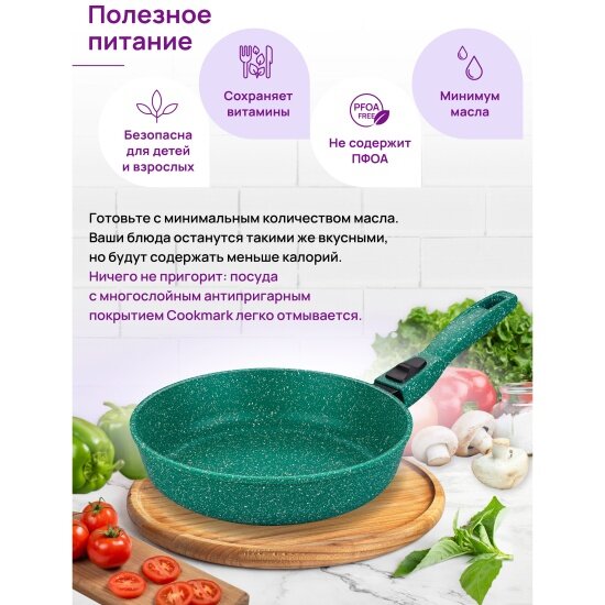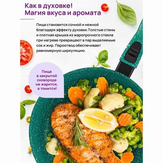 Сковорода глубокая Elan Gallery Гармония вкуса "Изумруд" с крышкой, со съёмной ручкой, 22 см интересное: