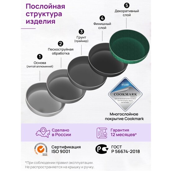 | Особенности | мытье в посудомоечной машине / съемная ручка / ненагревающаяся ручка / крышка в комплекте |