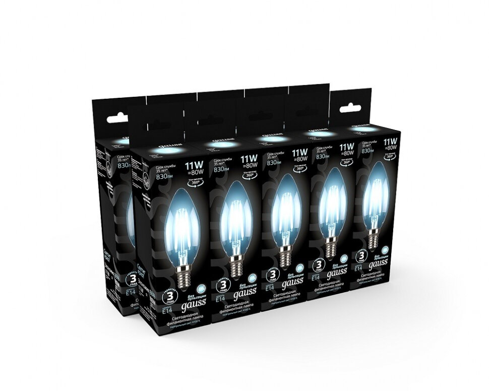(5 шт.) Gauss LED 11Вт E14 4100К 750lm Свеча Филаментная