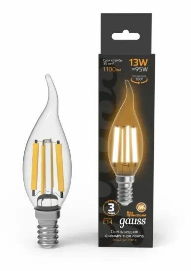 Купить Лампа филам. Gauss Filament 11Вт цок.E14 свеча 220B 2700K св.свеч.бел.теп. CF35 упак.1шт 104801111