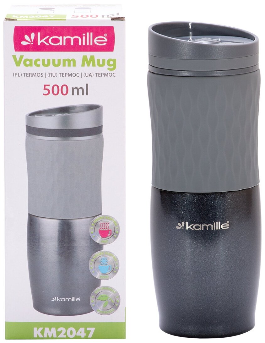 Купить Термокружка 500 мл. Kamille KM 2047 из нержавеющей стали с TPR вставкой (2047 / серый)