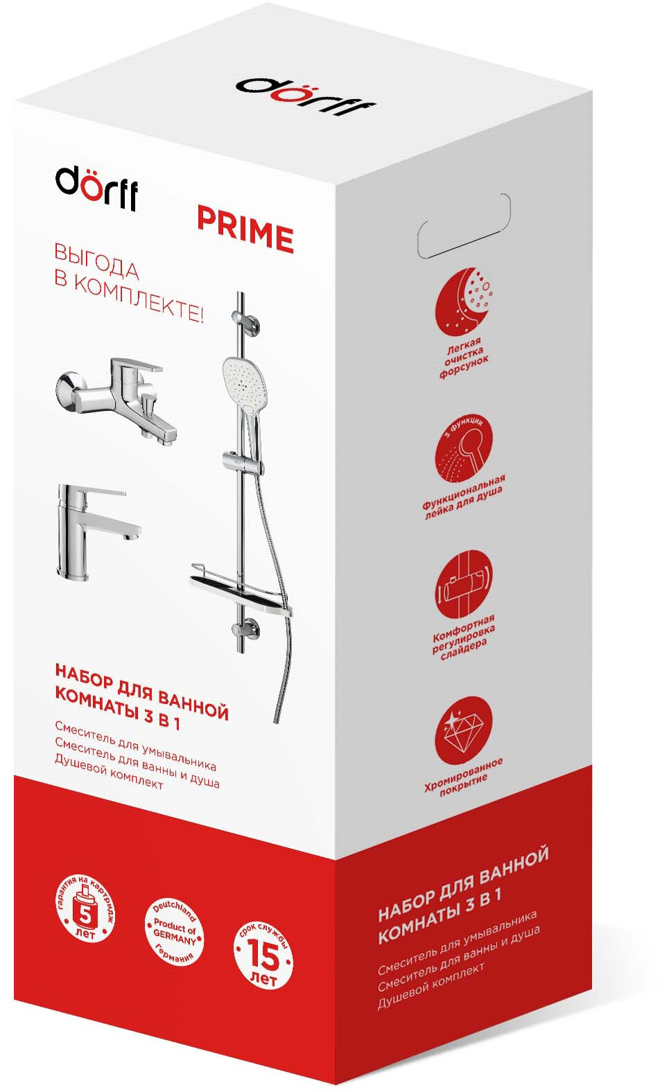 Комплект смесителей Dorff Prime для раковины, ванны, душевой гарнитур (D4085000)