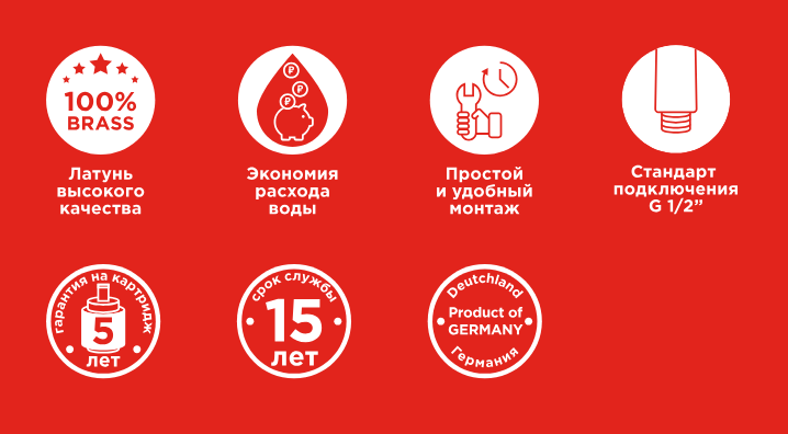 | Комплектация | смеситель - 1 шт., комплект подводки 1/2 - 1 шт. |