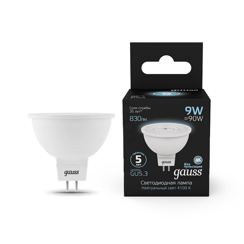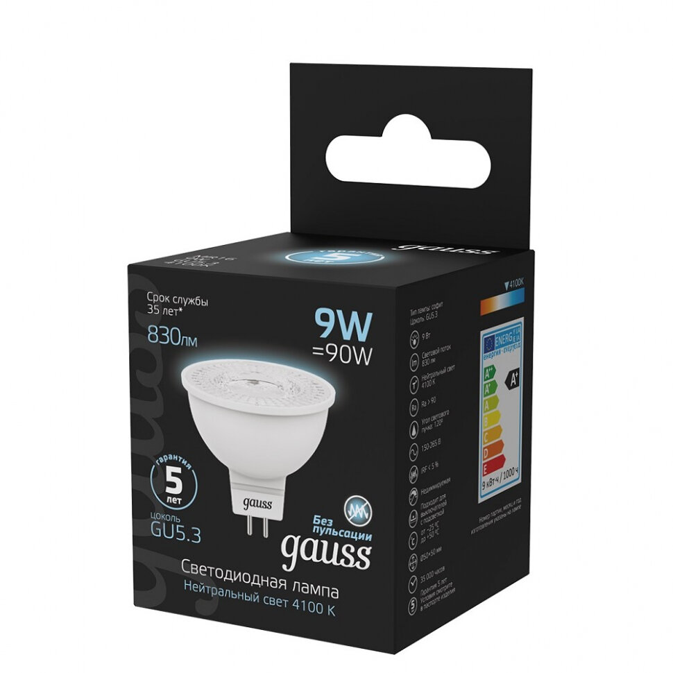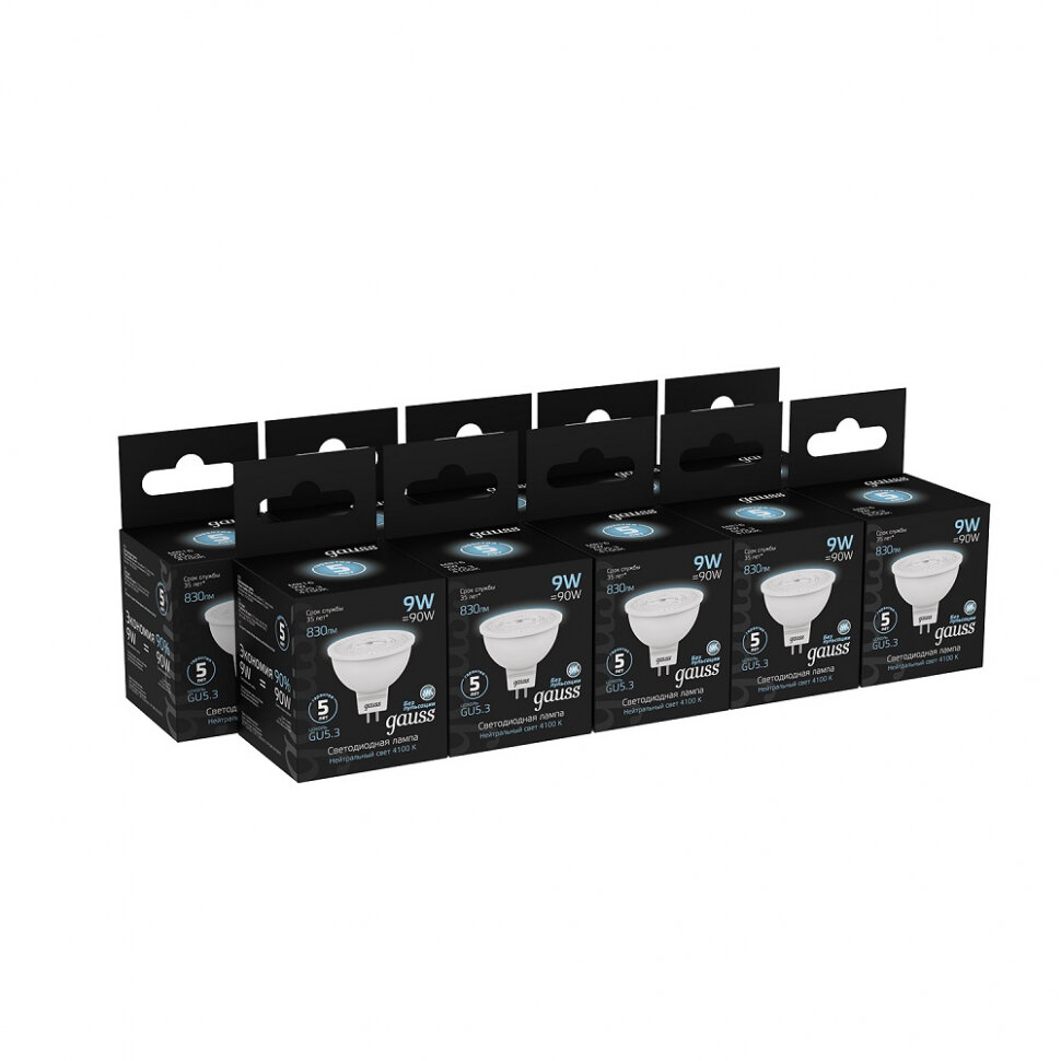 Купить Лампочка светодиодная MR16 GU5.3 9W нейтр белый свет 4100K упаковка 10 ШТ. Gauss