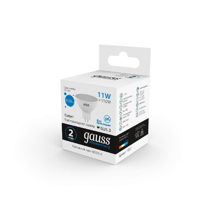 Gauss Лампа Elementary MR16 11W 850lm 6500K GU5.3 LED 1/10/100 13531