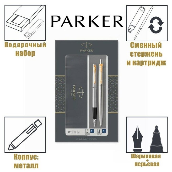 Набор ручек Parker Jotter Core FK691 (cw2093257) Stainless Steel GT сталь нержавеющая подар.кор. руч интересное: