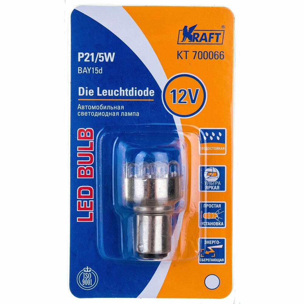 KRAFT KT700066 Лампа светодиодная 12V P21/5W 21/5W BAY15d KRAFT 1 шт. картон KT700066