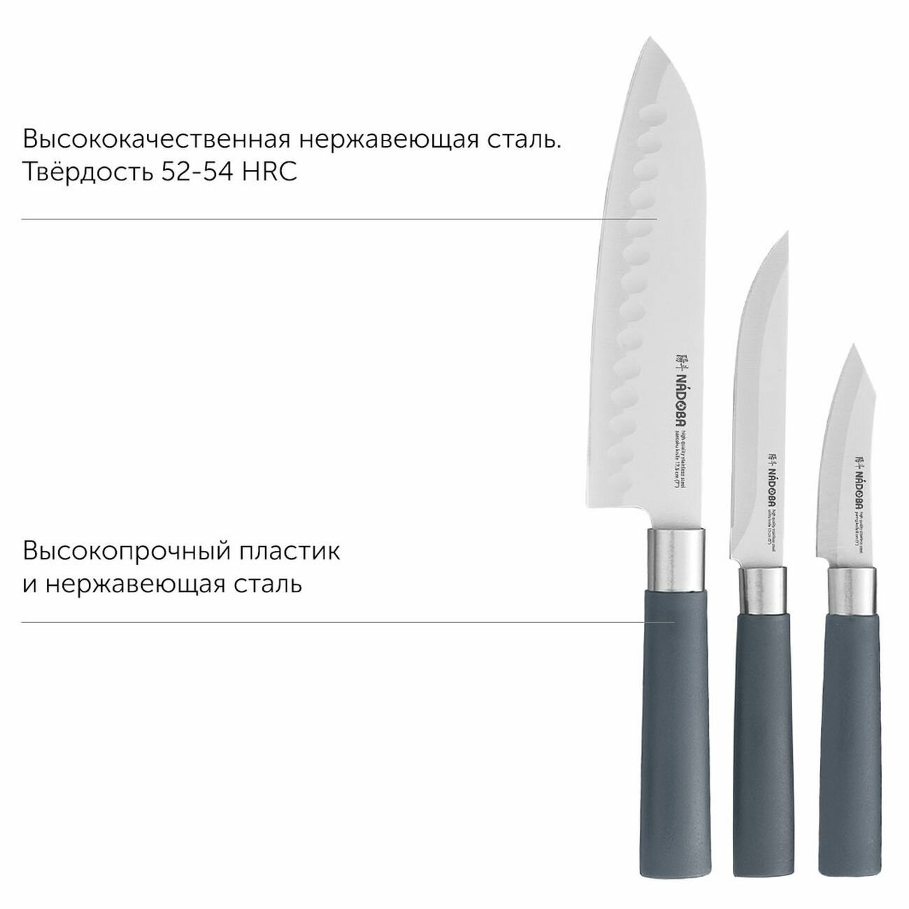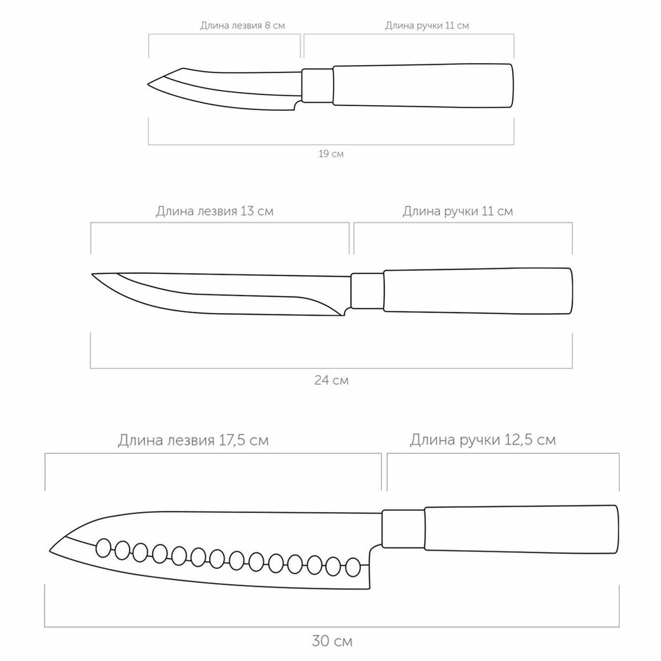 | Типы ножей в наборе | нож сантоку, нож для овощей, универсальный нож |
